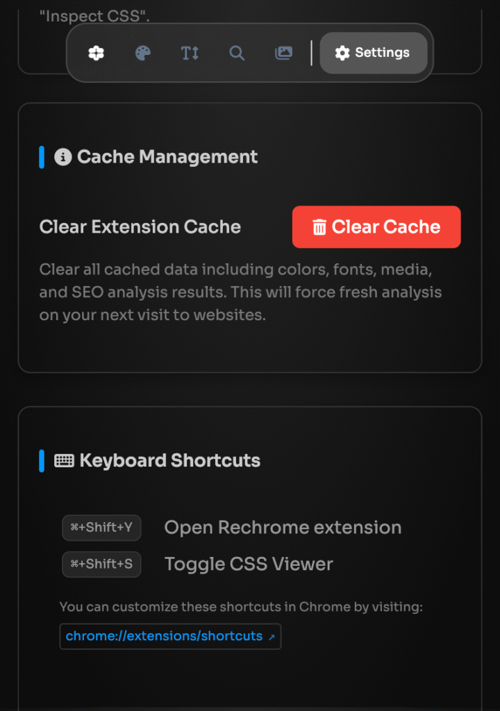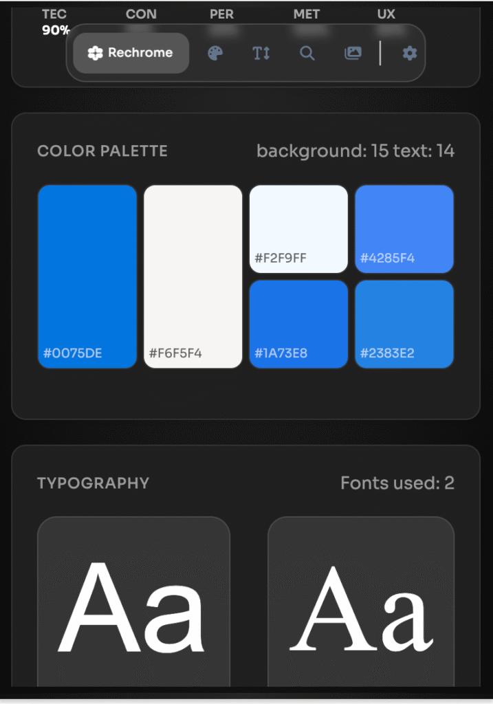 Streamline your web development process with ReChrome's comprehensive suite of analysis tools. From SEO optimization and color palette extraction to typography analysis and CSS inspection, get instant insights that help you build better websites faster. Join thousands of developers who trust ReChrome to enhance their workflow and deliver exceptional results.