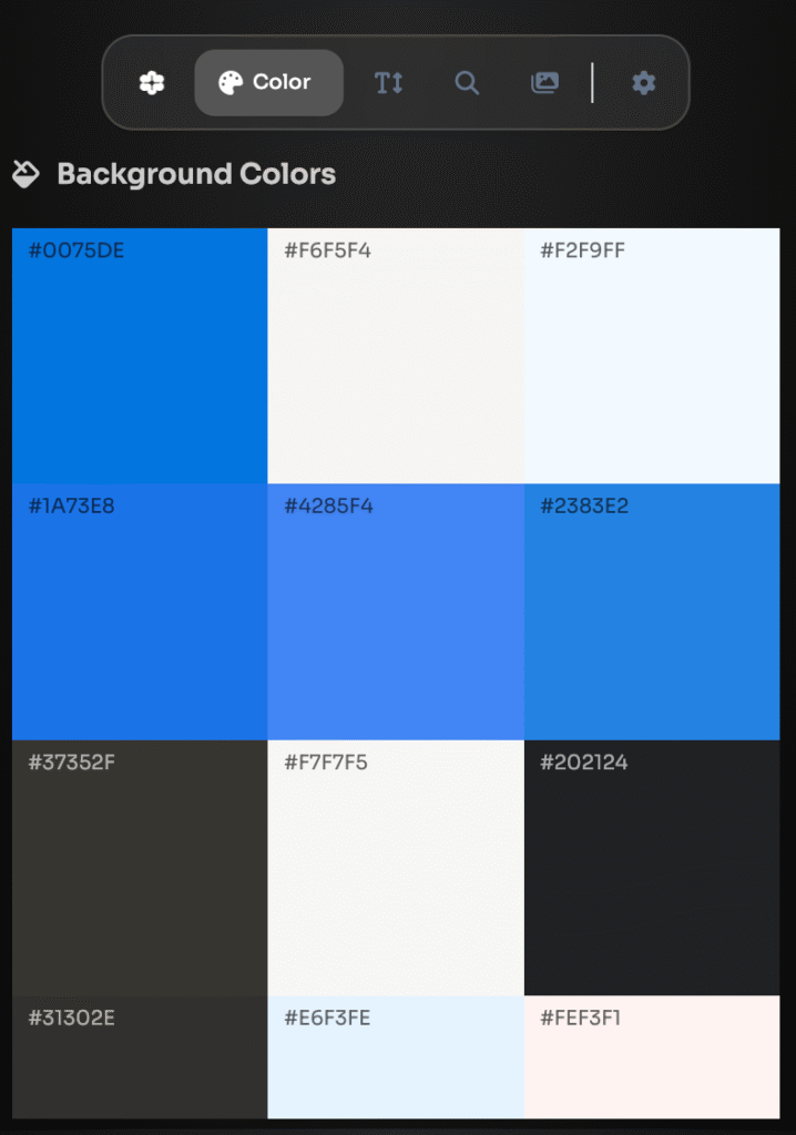 Interactive color picker and editing panels for precise color selection and adjustment.